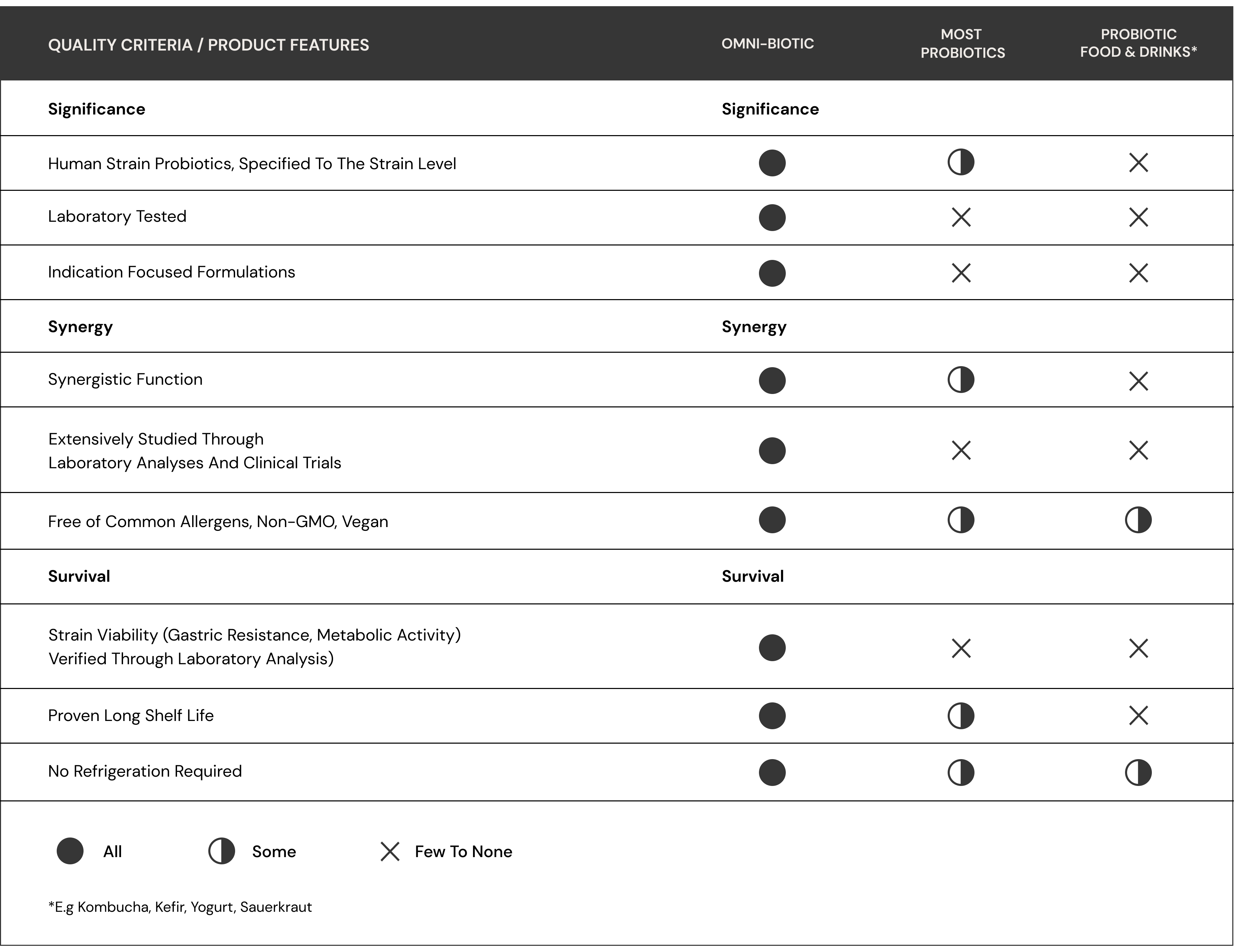 OMNi-BiOTiC® probiotics are uniquely designed to support different critical processes within the body. Take a look at our Product Fit Chart on our homepage to find the probiotic that best supports your body’s needs